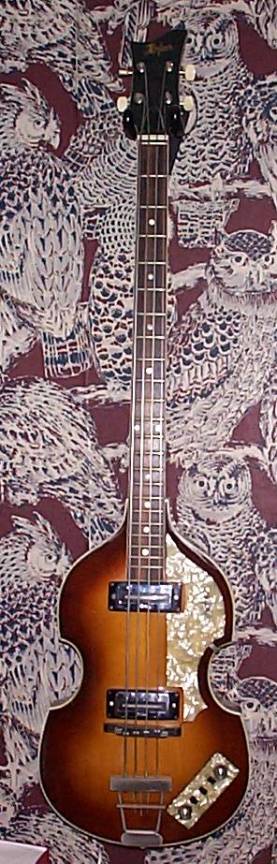 This is an original Hofner Beatle Bass from the 1960’s. I’ve played quite a few of these, and most are very UNimpressive. They all seem to rattle a lot, and sound like a cardboard box with strings. This one was an exception. The neck is the older finished on the back design, and it’s still quite true. After a little bridge work, the innotation is pretty good all the way up the neck now.