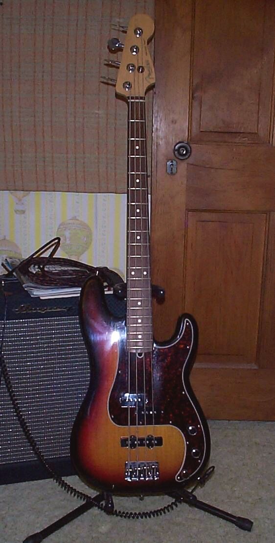 In spite of all it’s “flaws” this is my second favorite bass. This baby is solid as a rock! At one point, it was stored in a closet for 5 years at my mom’s house…much to my dismay when I opened the case, the bass was upside-down (neck down). This is not the way to store any bass, especially not a heavy one like this. I pulled it out of the case, expecting the worst (a warped neck). Much to my pleasant surprise, not only wasn’t it warped, it was still in perfect tune! A lot of people call the P-Bass with the C version neck a telephone pole to play. I think there was wisdom in having that fat neck. It’s still perfect after all these (40+) years. This bass will almost certainly outlive me.